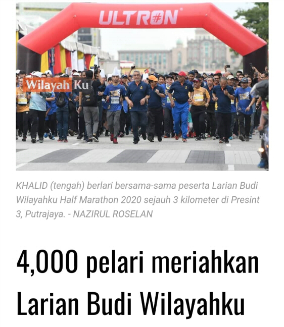 Persatuan juga telah menaja pelajar Universiti Teknologi MARA (UiTM) Perlis menyertai larian tersebut. Gambar-gambar sekitar Program Larian Budi WilayahKu di Dataran Putrajaya Presint 3, pada 22 Februari 2020.