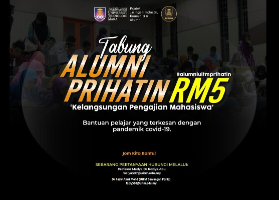 Tabung RM5 Alumni UiTM #alumniuitmprihatin telah diperkenalkan oleh Pusat Jaringan Alumni (ANC), Pejabat Jaringan Industri, Komuniti dan Alumni (ICAN), UiTM pada bulan Oktober 2020. Ia merupakan merupakan tabung inisiatif berbentuk crowdfunding yang memberi peluang kepada seluruh alumni UiTM dalam membantu pelajar yang terkesan dengan pandemik Covid-19.