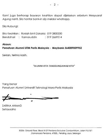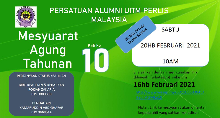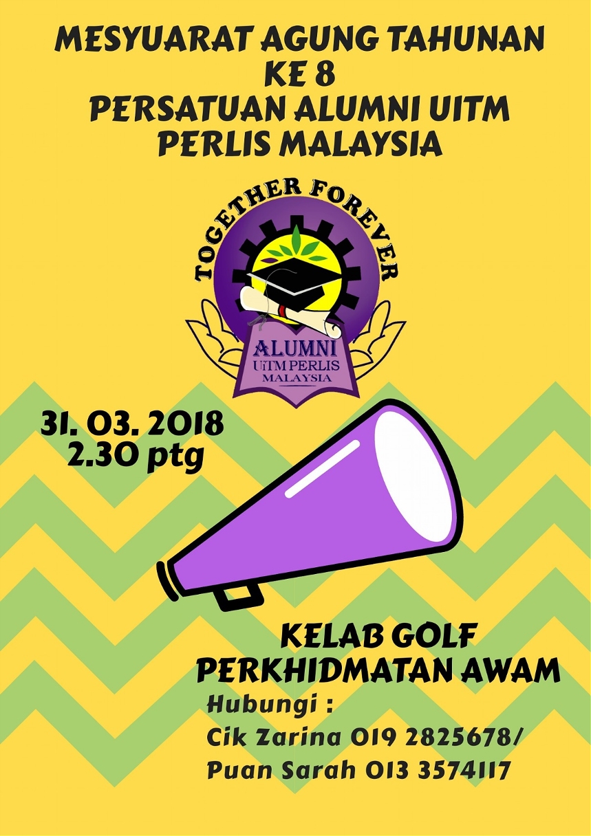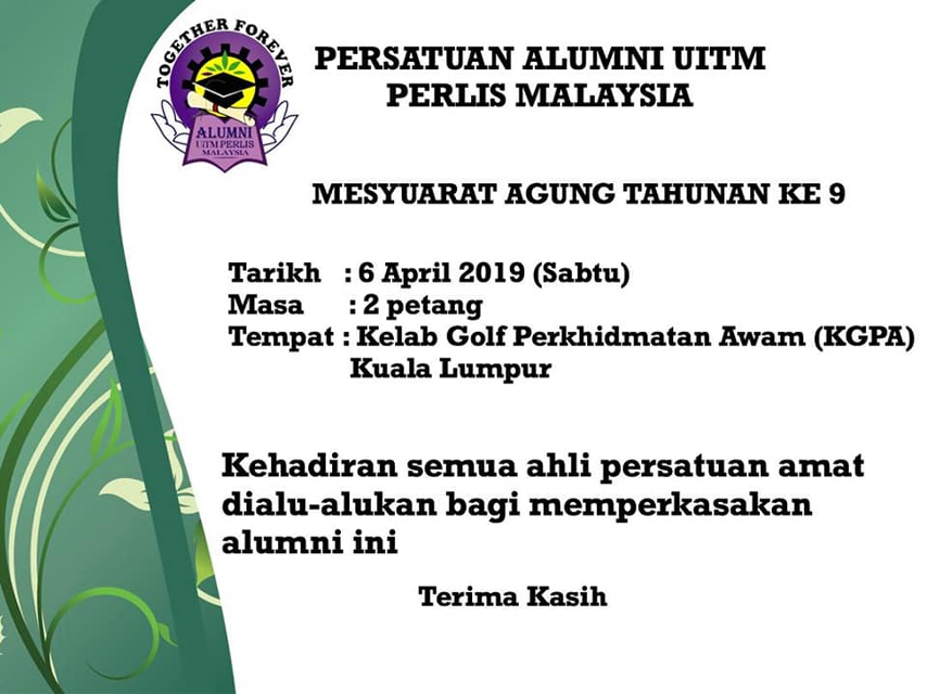 Time has come for the annual general meeting of our beloved Persatuan Alumni UiTM Perlis to be held with the details as follows:
