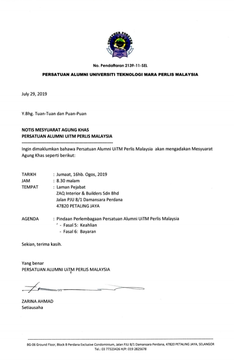 Notis Mesyuarat Agung Khas Persatuan Alumni UiTM Perlis Malaysia