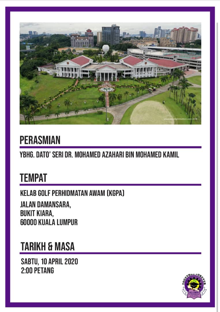 Venue : Dewan Seroja, Tingkat 1, Kelab Golf Perkhidmatan Awam